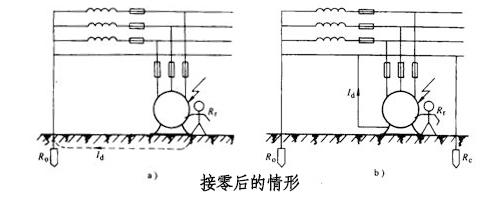 1.保護(hù)接零原理:在中性點(diǎn)直接接地系統(tǒng)中,當(dāng)相絕緣損壞,外殼短路時,相對零線的單相短路通過設(shè)備外殼形成。短路電流Id可以啟動保護(hù)裝置(如保險絲、低壓斷路器等)。)在線路上迅速動作,從而斷開故障部分的電源,消除觸電危險和接零丟失的情況;