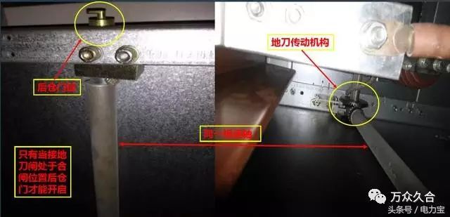 只有當接地開關處于關閉狀態(tài)時,開關柜的下門或電纜室的后密封板才能打開,只有當電纜室的后密封板關閉時,接地開關才能打開。