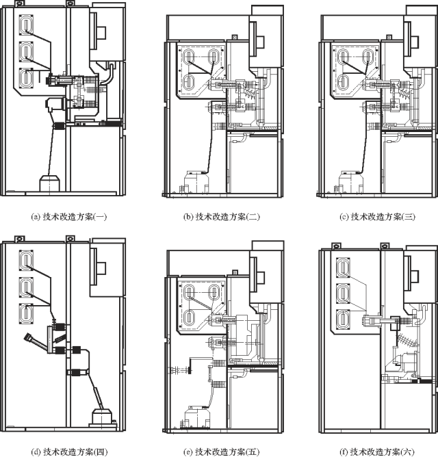 3.對(duì)于連接方式3,將避雷器從原隔間中取出,將避雷器移至手車中,并重新安裝到熔斷器和避雷器手車中,堵住原母線隔間的壁孔,添加手車的下觸頭盒安裝板、觸頭盒擋板和閥門機(jī)構(gòu),將電視機(jī)安裝在后隔間中,并通過導(dǎo)線連接到下觸頭。該方案可以在原有的手推車上實(shí)施,也可以考慮新的手推車。