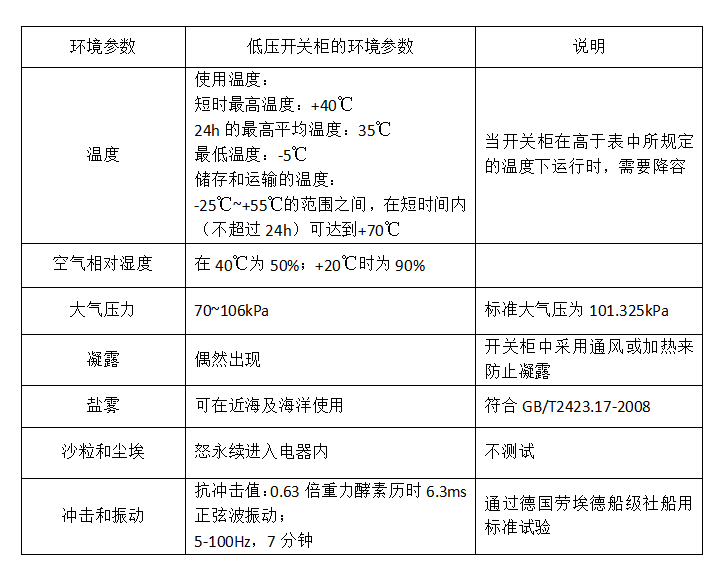 那么,低壓封裝開關(guān)柜的環(huán)境要求是什么?見表2。