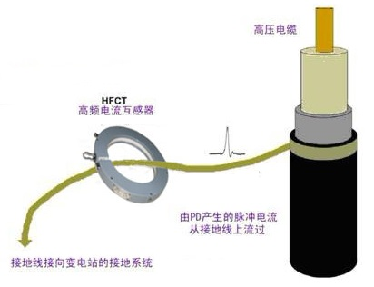 當對高壓電纜執(zhí)行局部放電檢測時,高頻變壓器也可以在此模式下使用,如下圖所示: