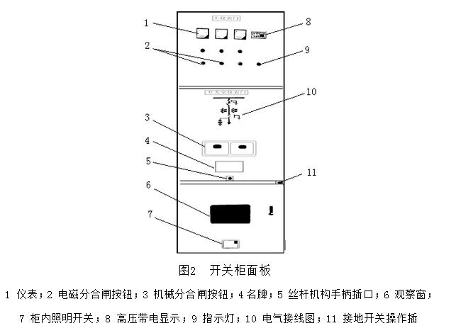 第二,開關柜面板開關柜面板分為兩部分:儀表門和開關儀表門。儀表門主要完成儀表檢測、帶電檢測、信號燈監(jiān)控和就地電氣操作;開關儀表門主要完成開關接地開關的就地機械操作。