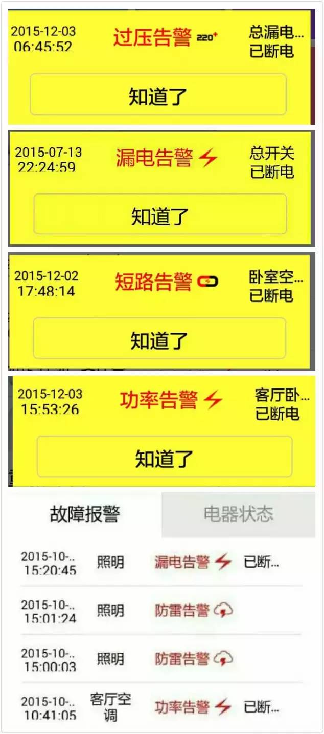 電力線的漏電、開路、過電壓等故障可以實時發(fā)送預警信息和故障記錄,不了解電力的業(yè)主可以及時準確地知道故障原因,不僅避免了電力事故的發(fā)生,也便于電工及時檢修線路。
