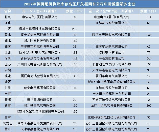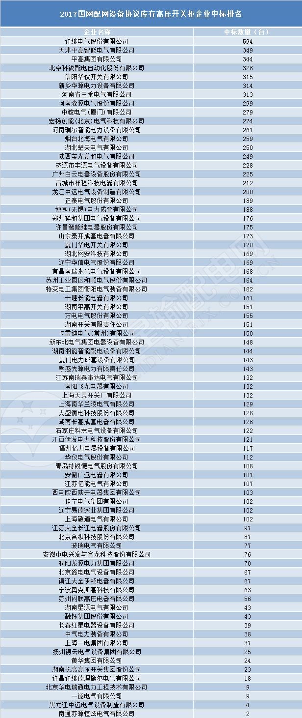 說到投標(biāo)情況,怎么會沒有中標(biāo)的情況呢?接下來,邊肖將讓大家了解2017年全國配電網(wǎng)設(shè)備協(xié)議庫存開關(guān)柜設(shè)備的中標(biāo)情況。