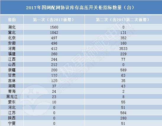 2017年,全國電網(wǎng)配電網(wǎng)設(shè)備協(xié)議庫存開關(guān)柜類設(shè)備共被邀請4次,主要是高壓開關(guān)柜類設(shè)備,共邀請招標(biāo)11540臺。其中,首次高壓開關(guān)柜(含2017年新增)招標(biāo)涉及15家省級公司,共計5307臺。第二高電壓開關(guān)柜(包括第二次新增)有17家省級電網(wǎng)公司參與,共6233臺。投標(biāo)前后的投標(biāo)數(shù)量差異很小,而且相對穩(wěn)定。根據(jù)中國國家電網(wǎng)公司2018年發(fā)布的統(tǒng)計數(shù)據(jù),高壓開關(guān)柜競價的數(shù)量為6499臺。由此可見,高壓量開關(guān)柜在國家電網(wǎng)配電網(wǎng)設(shè)備協(xié)議清單投標(biāo)中保持了一定的穩(wěn)定性。