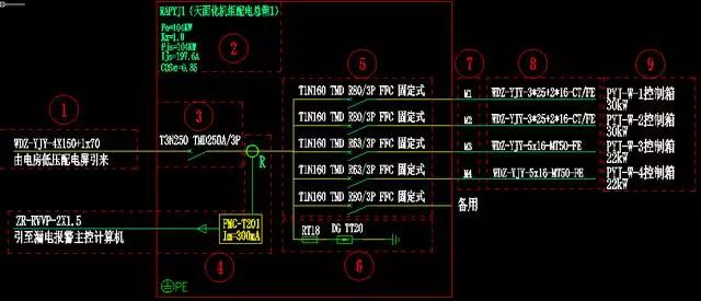 第一部分:這部分是配電箱的輸入線,表示電源的來源。
